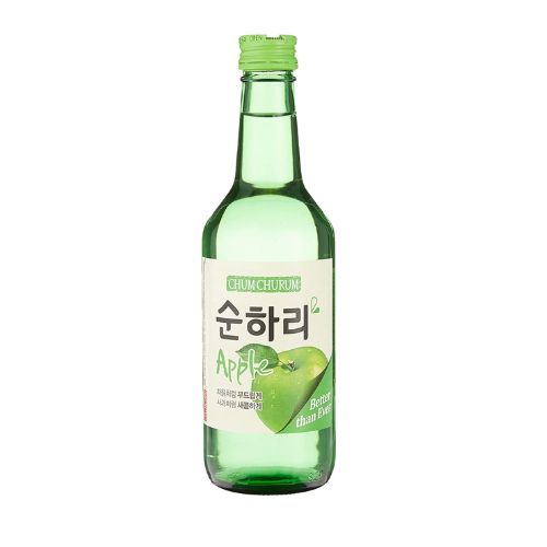 Embalagem: Contém uma garrafa de soju chum-churum de 360ml sabor maçã.